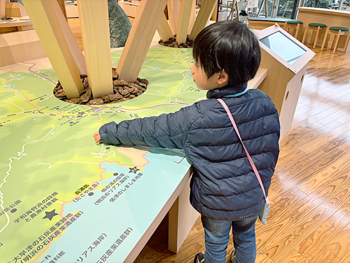 館内にある、愛媛県内の地図を見ながら、「遠いところまで来たね」と自宅からここまでの距離にビックリしていました。