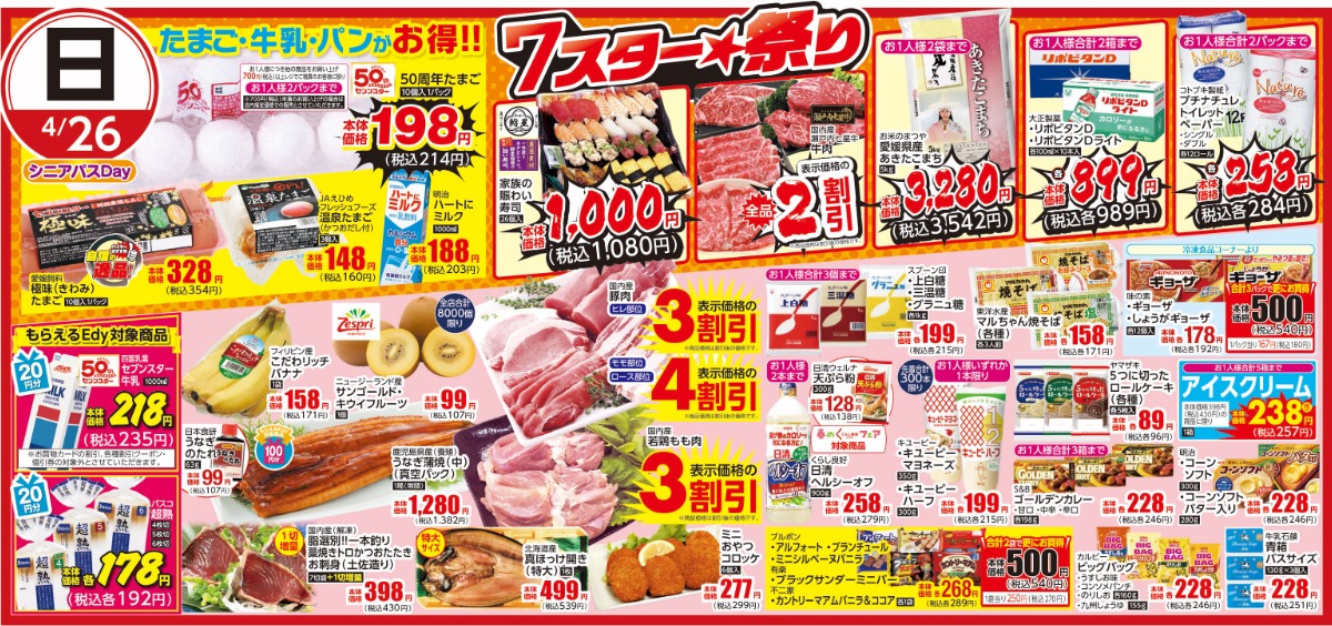 【セブンスター│チラシ】4/20(月)~4/26(日)|お買い得商品をチェックしよう!