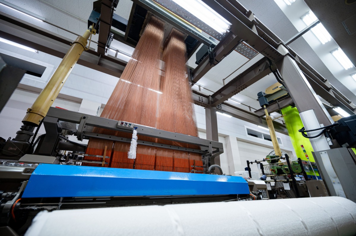 機械が製造の流れに沿って並んでいるため、横を歩いて通るだけでタオルの作り方に触れることができる空間になっています。