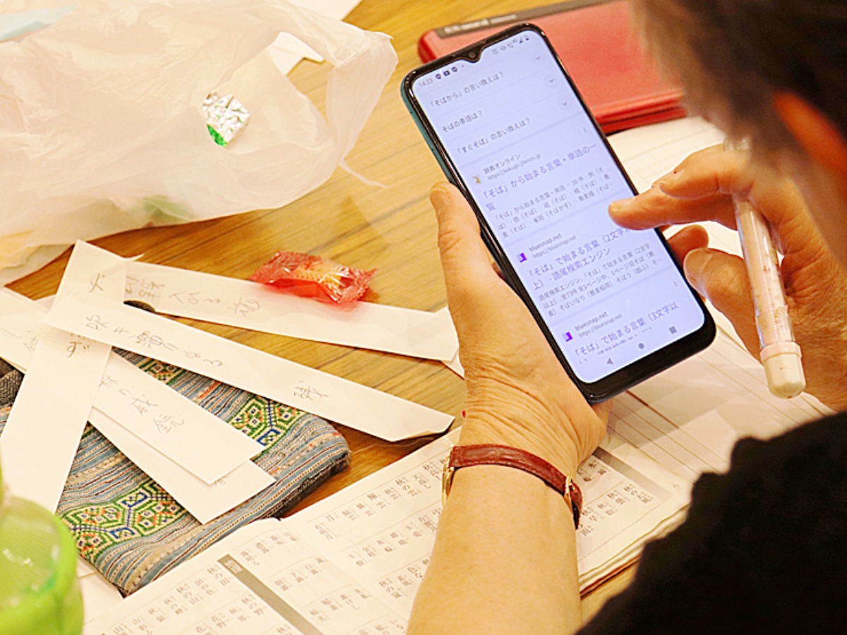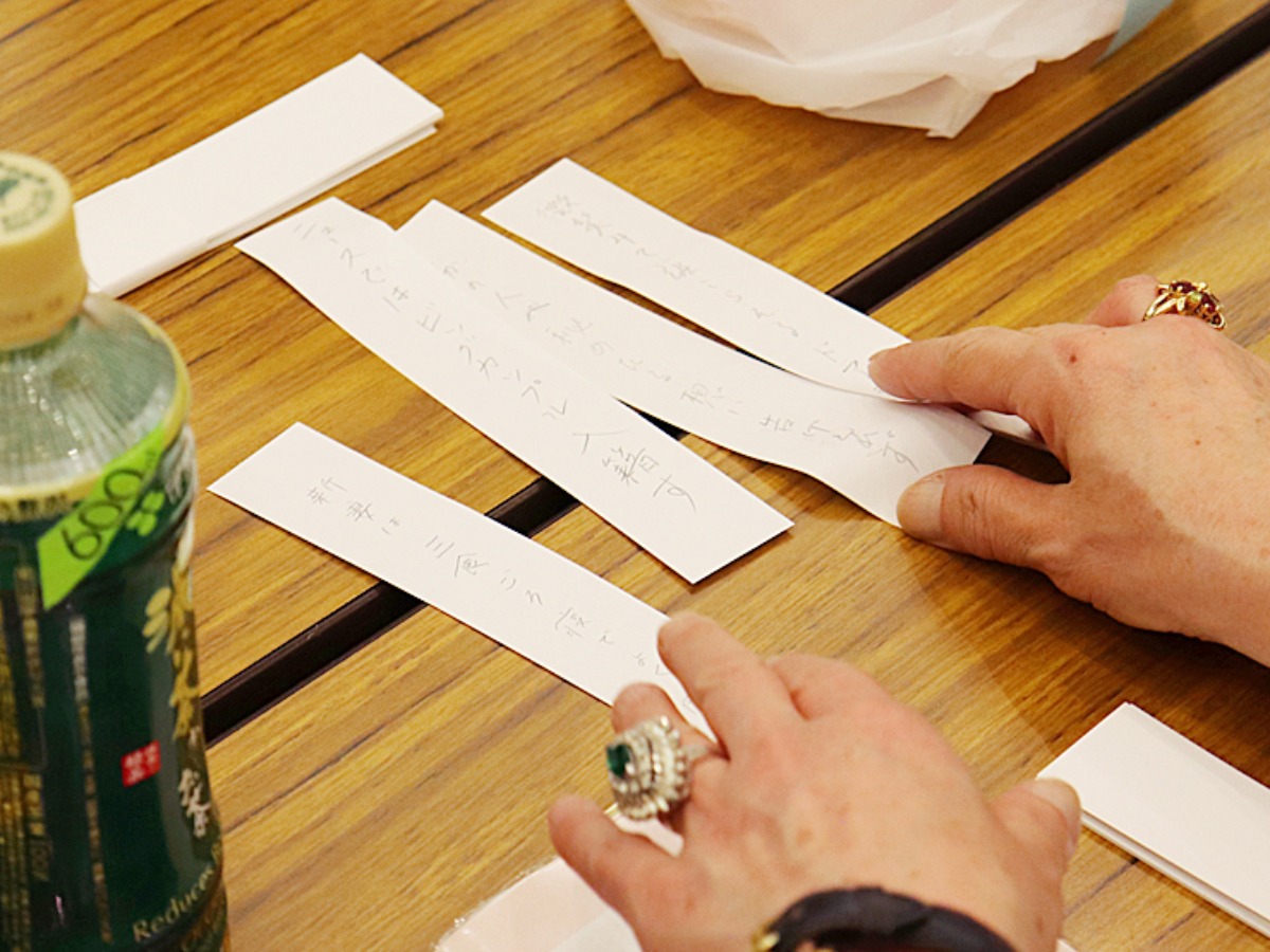 最初の約30分はそれぞれ一人ひとり黙々と句を作る時間。ある程度できたら、みんなで句を出し合いながら全体を作っていきます。