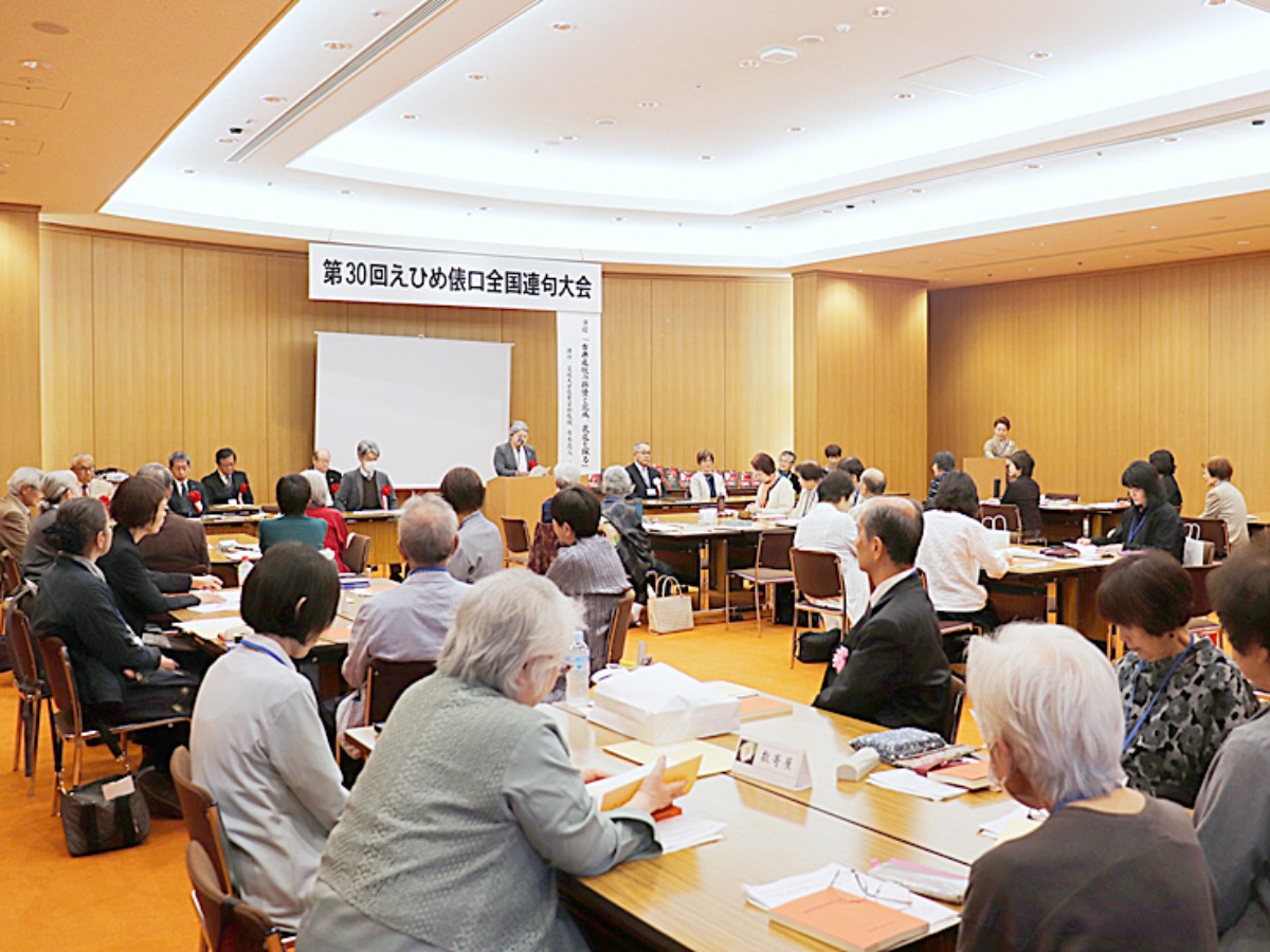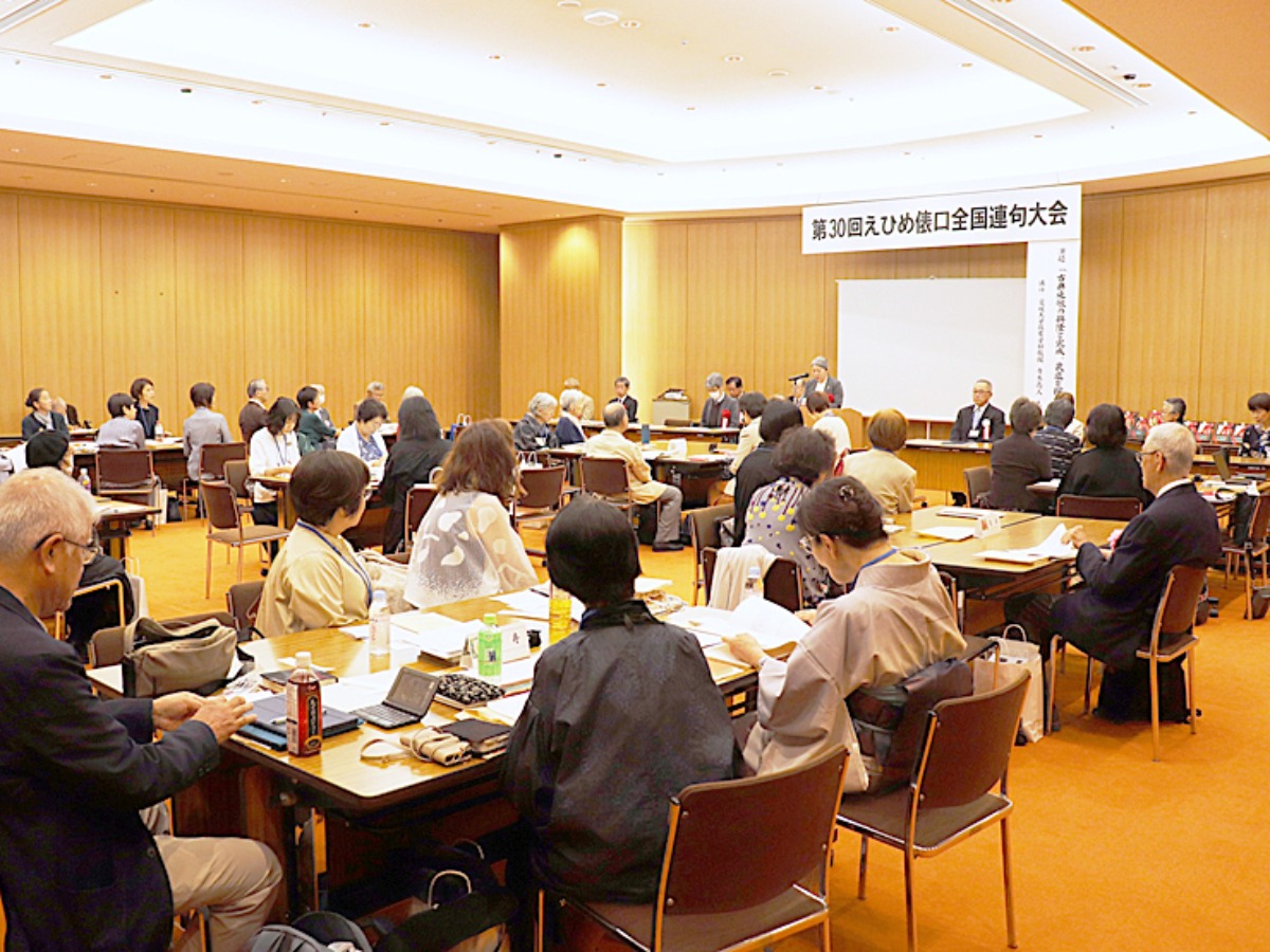 毎年秋に愛媛県内で開催される「県民総合文化祭」でも連句大会が実施されていますが、今回記念すべき30回目を迎えるこの会では、全国各地から連句を愛する人々が愛媛に集結!東京や大阪はもちろん中四国や九州からも、総勢約60名の方々がこのイベントに集まっていましたよ。