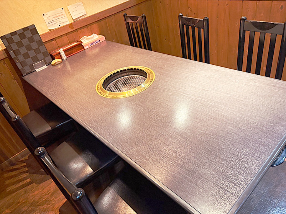 テーブル席。無煙ロースターがパワフルで、帰宅後の衣服から焼肉の臭いがしませんでした。