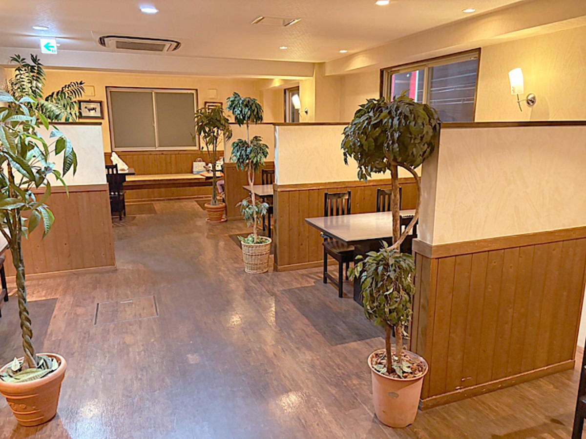 レイアウトは個室ではなく広めのテーブル席。ゆったり寛げます。