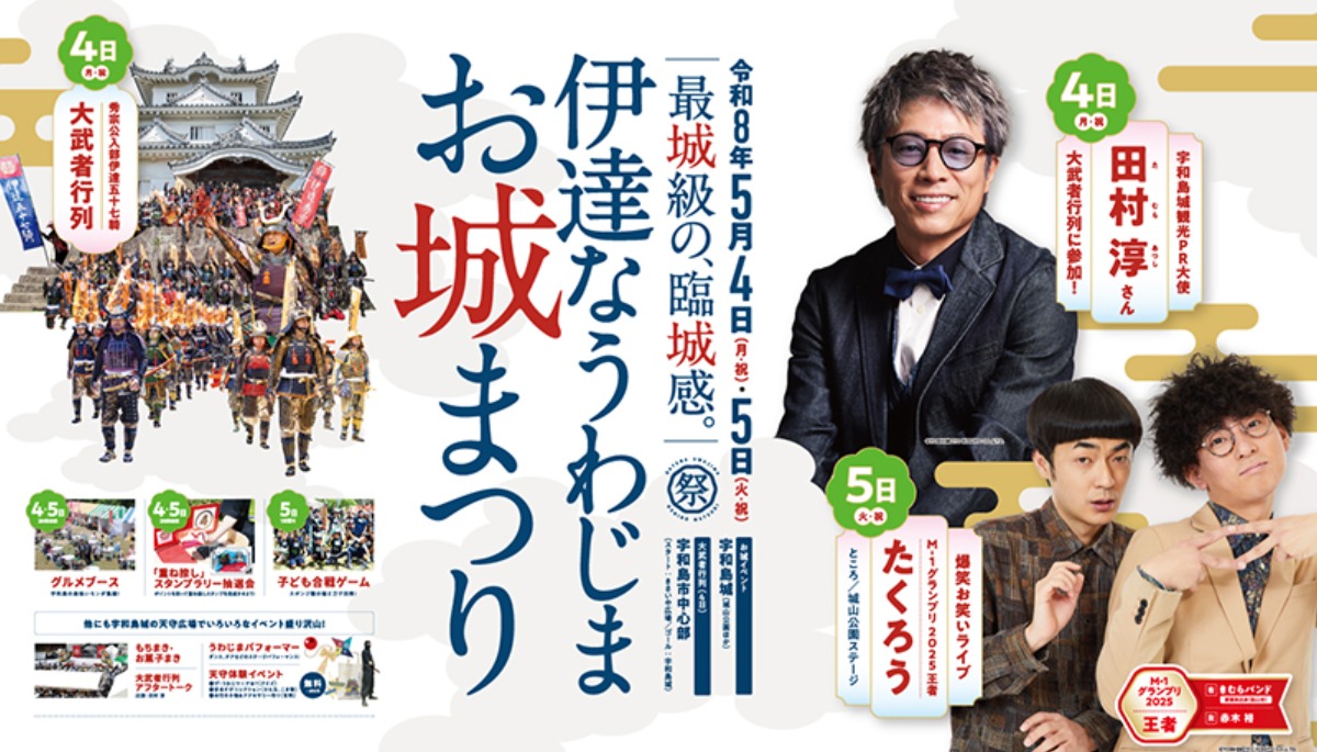 今年は、宇和島城観光PR大使に就任された「田村 淳」さんが特別参加します。