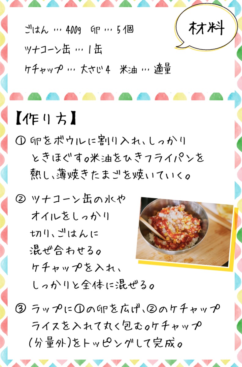 お子さんも喜ぶオムライスをおにぎりに。シーチキンの旨みとコーンのプチプチ感がアクセントになっています。この分量で小さめのボール型で10個作れます。