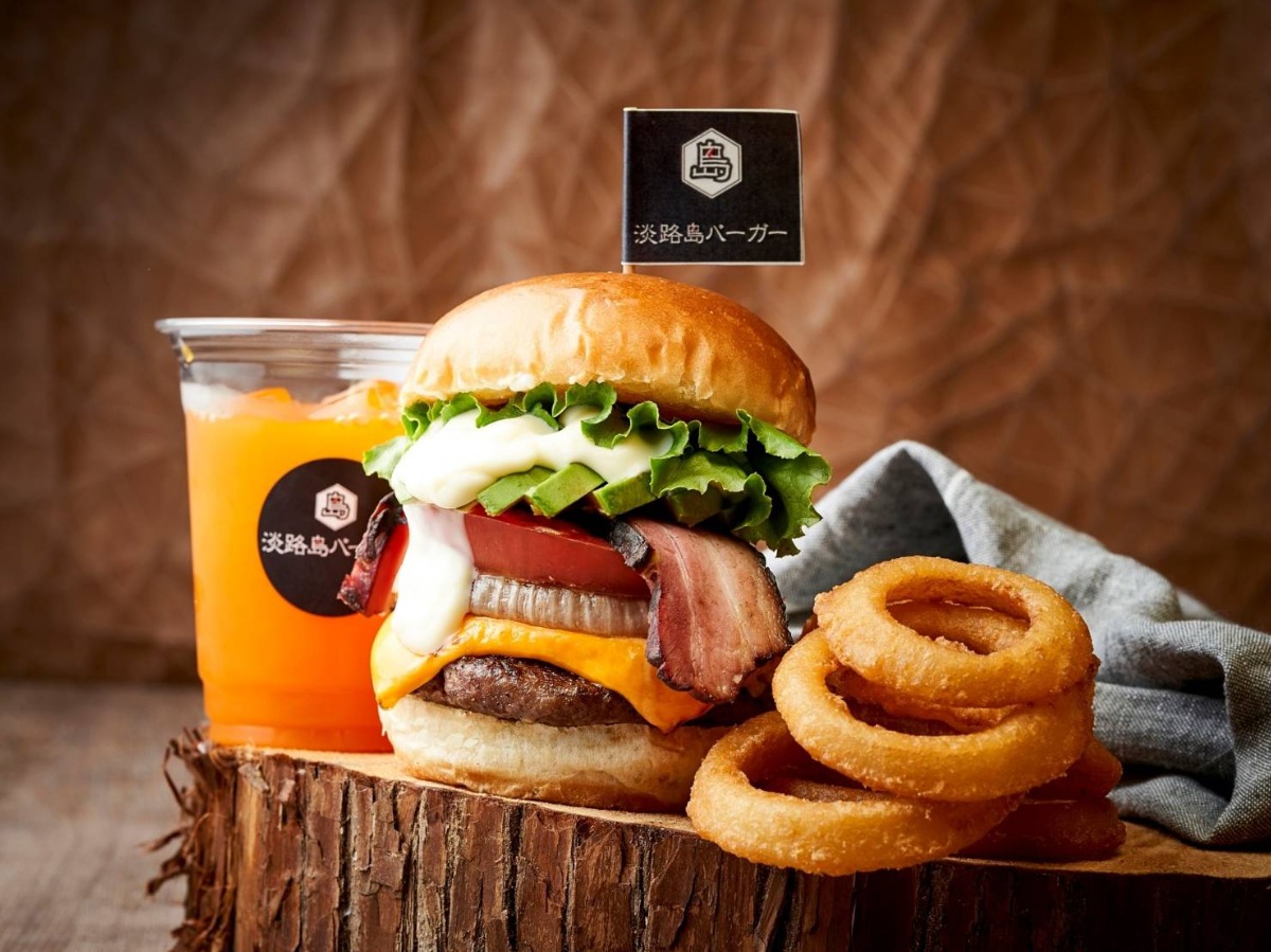 四国初の「淡路島バーガー」がオープン。淡路島産の完熟タマネギとその甘みを引き出すソースが自慢。注文を聞いてから作り始めるので、できたての美味しさを堪能できる。アボカド、チーズなどをトッピングして、自分好みの味を楽しんで。