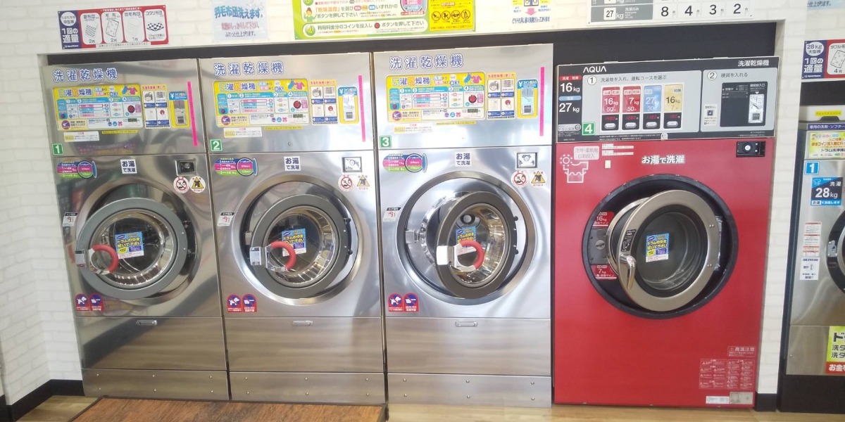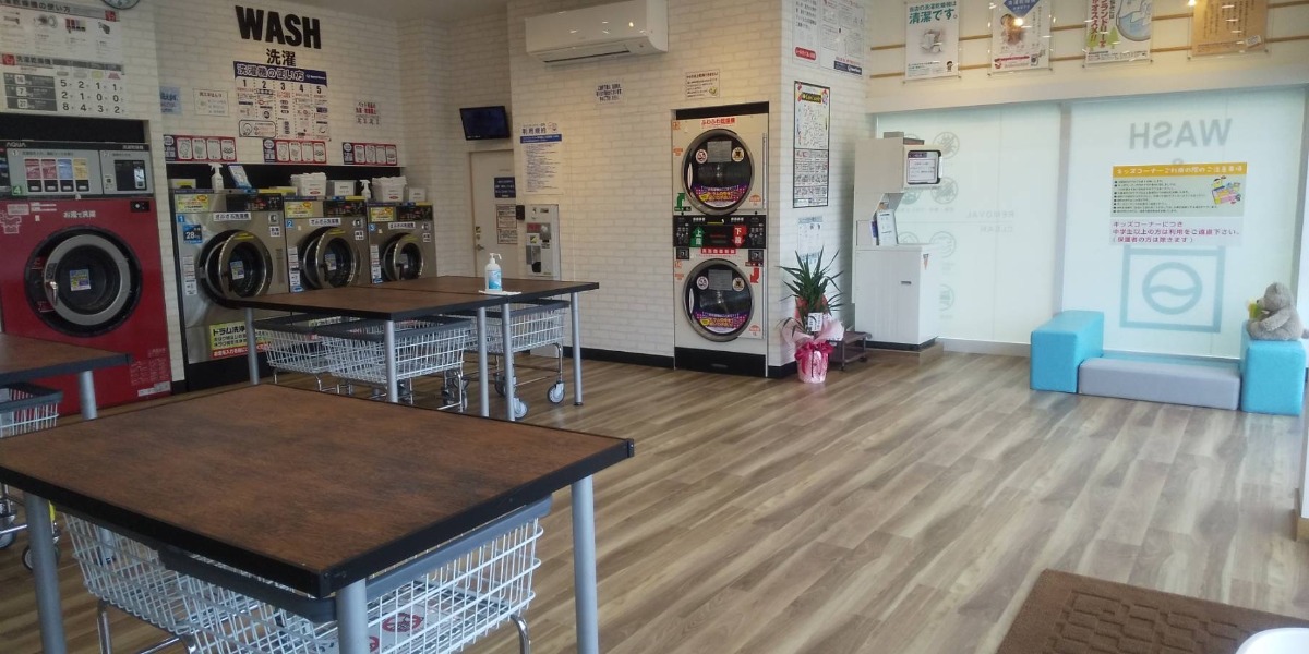 洗濯乾燥機4台、洗濯機3台、乾燥機14台を完備する、清潔さが自慢の店。クリーニング工場の洗剤とお湯での洗濯で洗浄レベルは文句なし。また、高温乾燥と乾燥機内の力強い風の循環でアレルギー対策もばっちり。キッズスペースも完備。