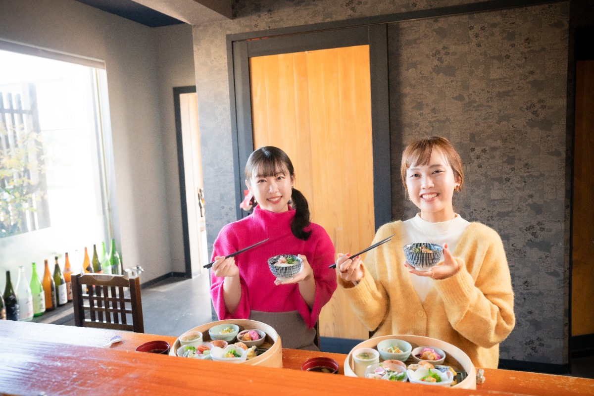 愛媛朝日テレビで放送中の「なるちか!」で共演しているゆりママんさんと木和田アナ。2人が訪れたのは東温市にある和食料理店「一汁三菜 五感」。ブログやSNSで話題のグルメを紹介しているゆりママんさんは、最近ヘルシーな料理を求め、和食店を開拓しているそう。その第1弾として訪れたのがこの店だった。