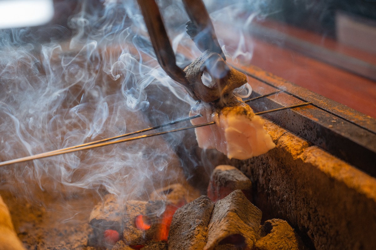 「多いときで週2回。心の栄養補給をしたいと思ったときに訪れる店です」と、中岡さんが山﨑さんを連れてやってきたのは、近海の活魚や県内産の旬の野菜を使用した料理を味わえる店「肴薫」。大の魚好きだと話す中岡さんが特に驚いたのが、熟成魚の刺身。天然魚を熟成させた刺身は、脂もまわり、モッチリしっとりとした食感。