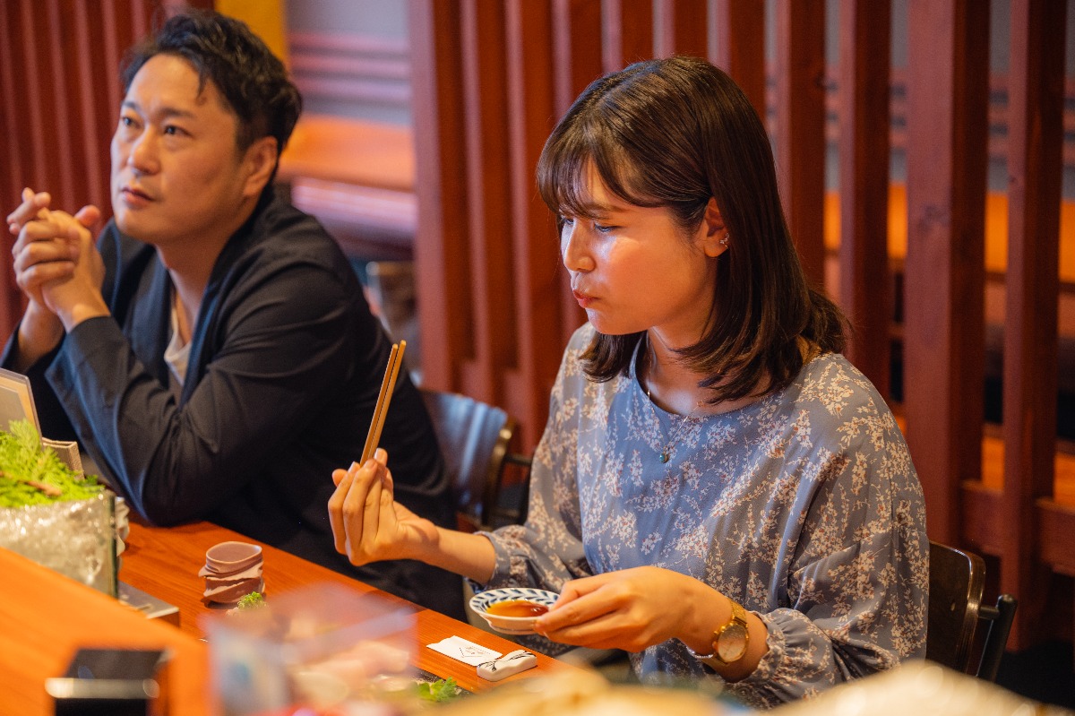 中岡さんの隣で、山﨑さんは「美味しい!」と幸せ顔