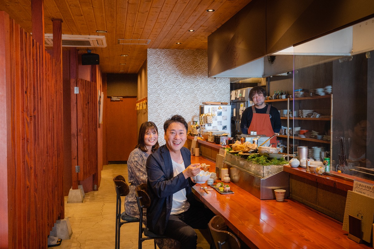 近海の活魚や県内産の旬の野菜を使用した、酒が進む一品料理を地酒と一緒に堪能できるお店。取り扱う魚は全て天然物にこだわり、調理法も素材によってその時々で変わる。上品な雰囲気ながら、気さくな店主さんの人柄から、親子三代やふらっと一人でも訪れやすい店。店内は、車椅子でも過ごしやすいバリアフリー仕様。