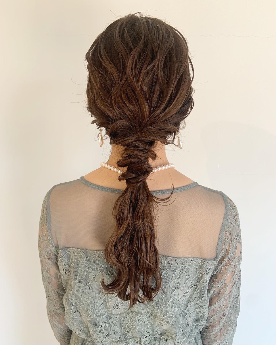 お呼ばれの時はアップスタイル、一つ結びアレンジ