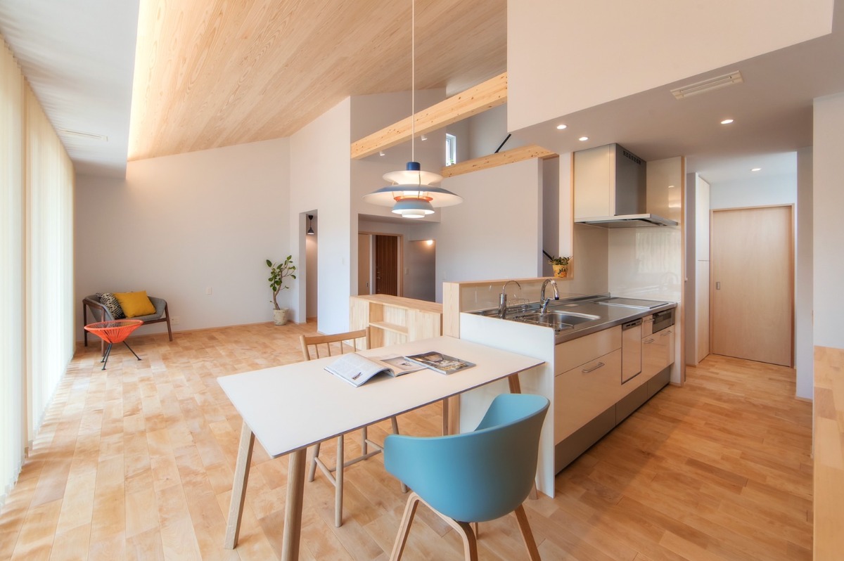 田園風景に溶け込んだ、土間キッチンのある平屋