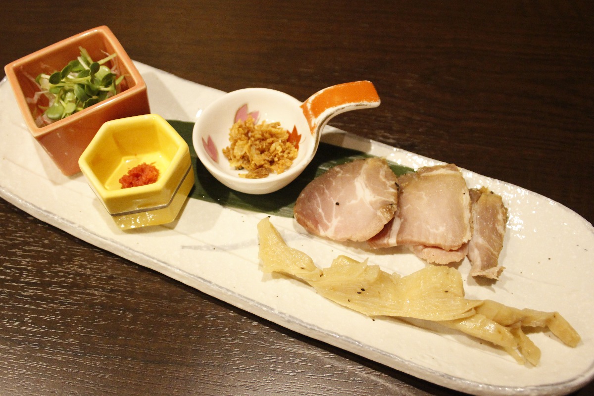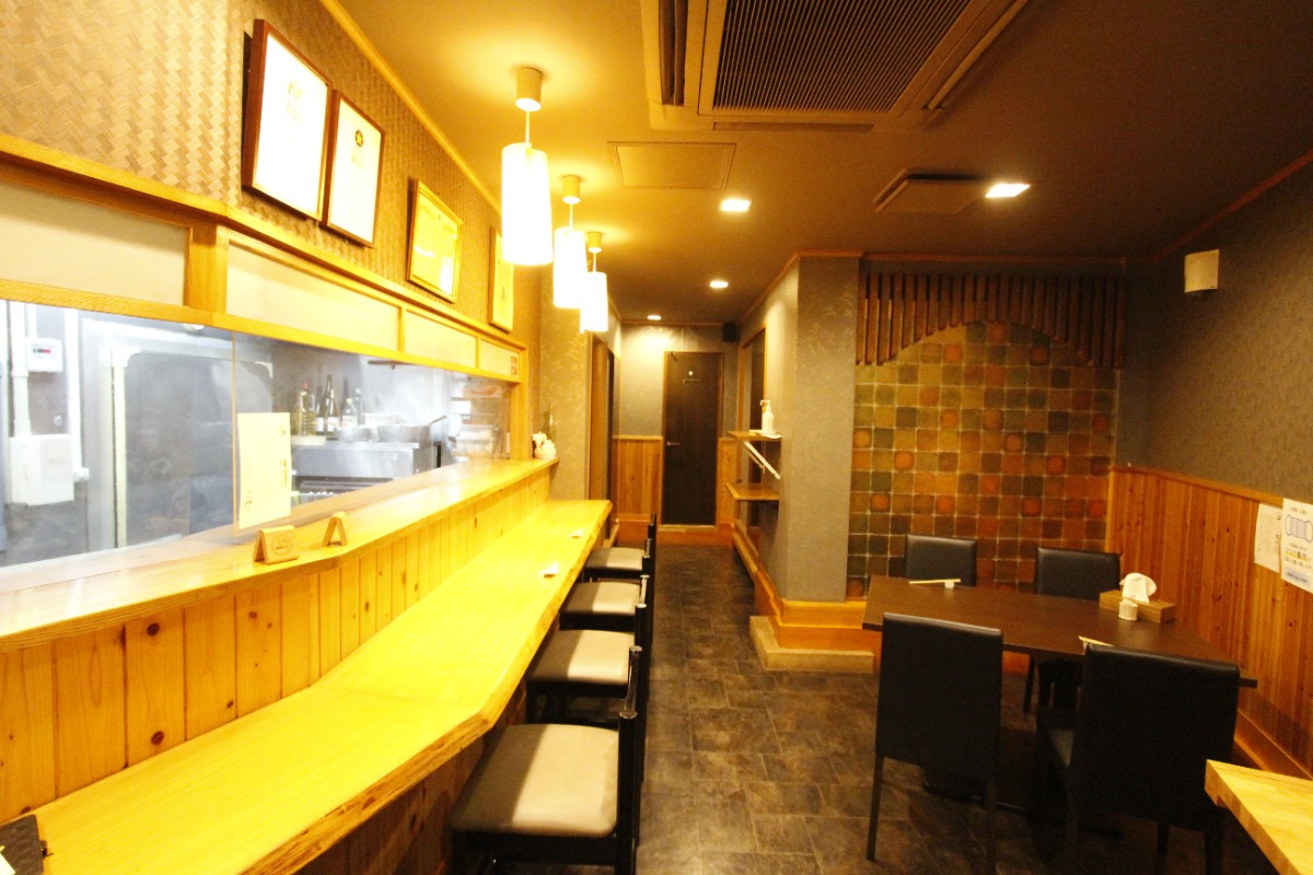 カウンターとテーブルの席があるので、1人でも家族や友人とも訪れやすい。紙の前掛けを渡してくれるので、ソースが洋服に飛び跳ねる心配をしなくてもいいのが嬉しいポイント。和を感じる素材で作られたラーメンは、日本酒などのお酒に合うこと間違いなし! 唎酒師の資格も持つ店員さんにおすすめを聞いてみては。