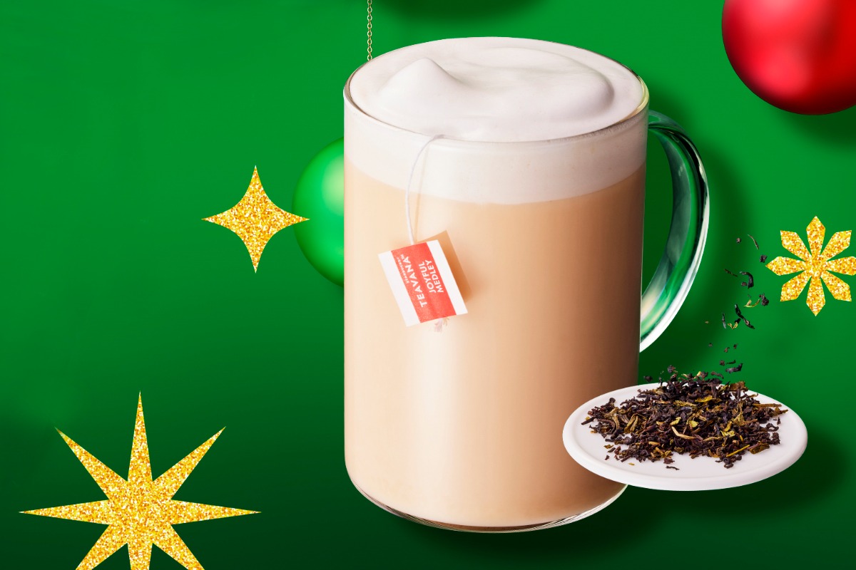 冬のおすすめメニュー「ジョイフルメドレー ティー ラテ」は、ホリデーシーズン定番のティーとして人気が高い。ブラックティーとウーロン茶のなめらかな甘さ、ジャスミンティーの花のような香りをブレンドし、アプリコットの華やかな風味がアクセントのTEAVANA™ ジョイフルメドレーに、スチームミルクを注いで仕上げたやさしい味わいのティーラテになっている。