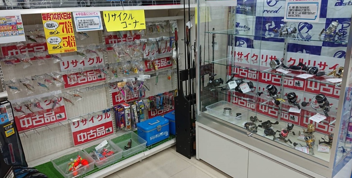 リサイクルコーナーでは、価値が分かるスタッフによる対応のおかげで、高価買取も期待できる。またフィッシング初心者は、中古で販売している竿、リール、ルアーなどを検討してみるのもおすすめ。不明な点はキャリアのある専門スタッフがサポートしてくれるのも◎。