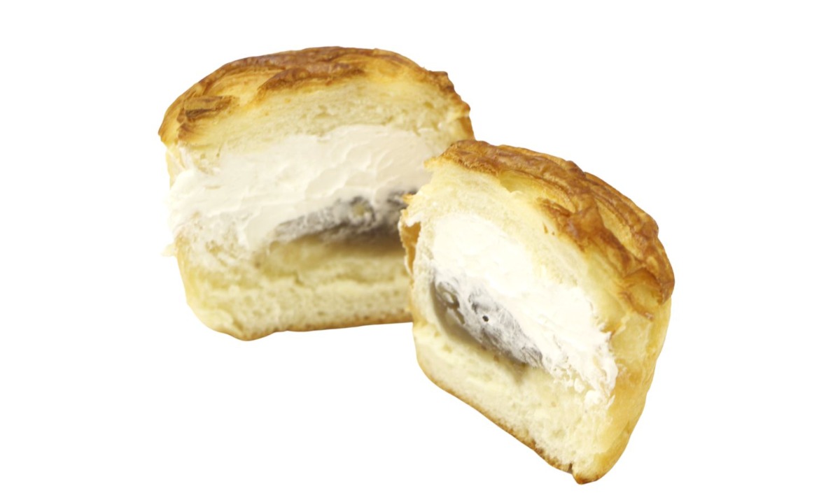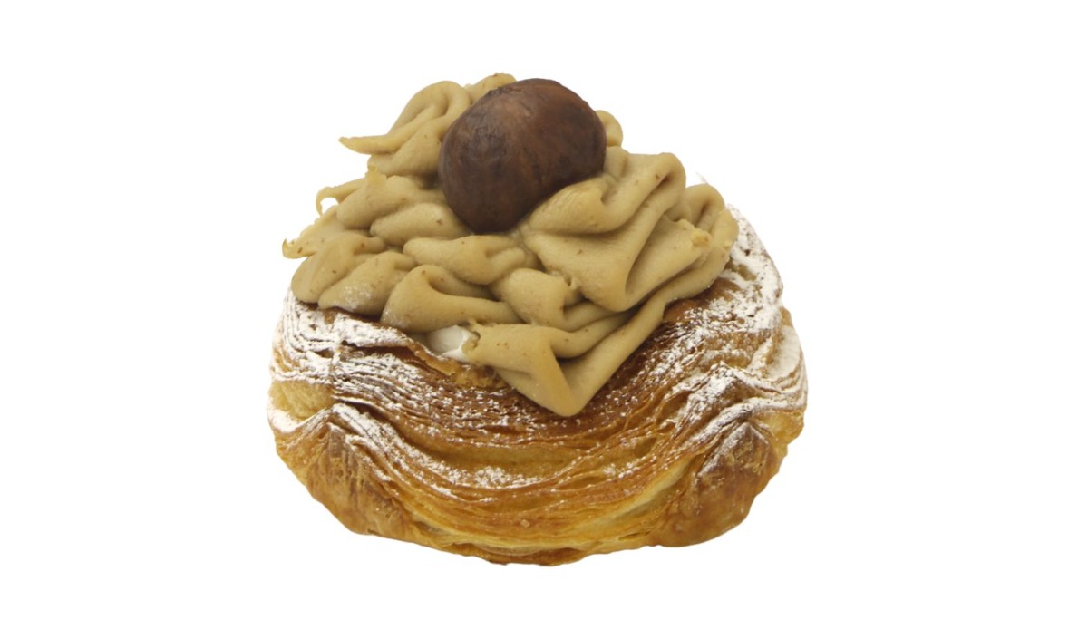 デニッシュ生地の上に生クリーム、やわらかいマロンペーストと、内子産の栗をのせた極上スイーツパン。