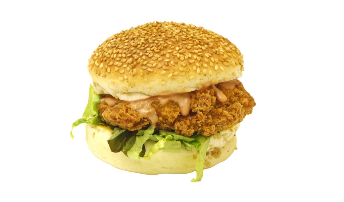 げんこつサイズのフライドチキンを豪快にサンドしたこちらのバーガー。隠し味を使ったオーロラソースが味の決め手です!