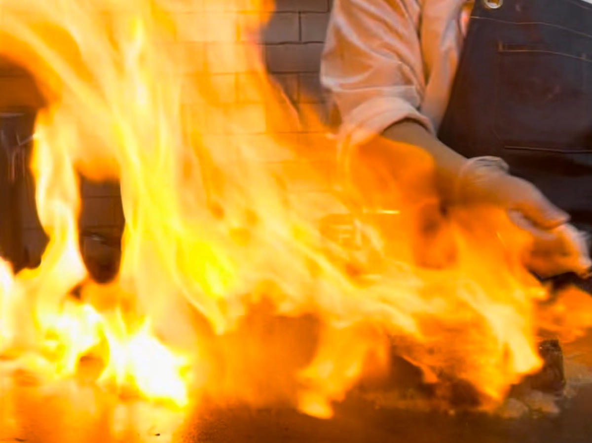 カウンターに座ると、目の前でダイナミックな炎に包まれるお肉を眺めることができます。