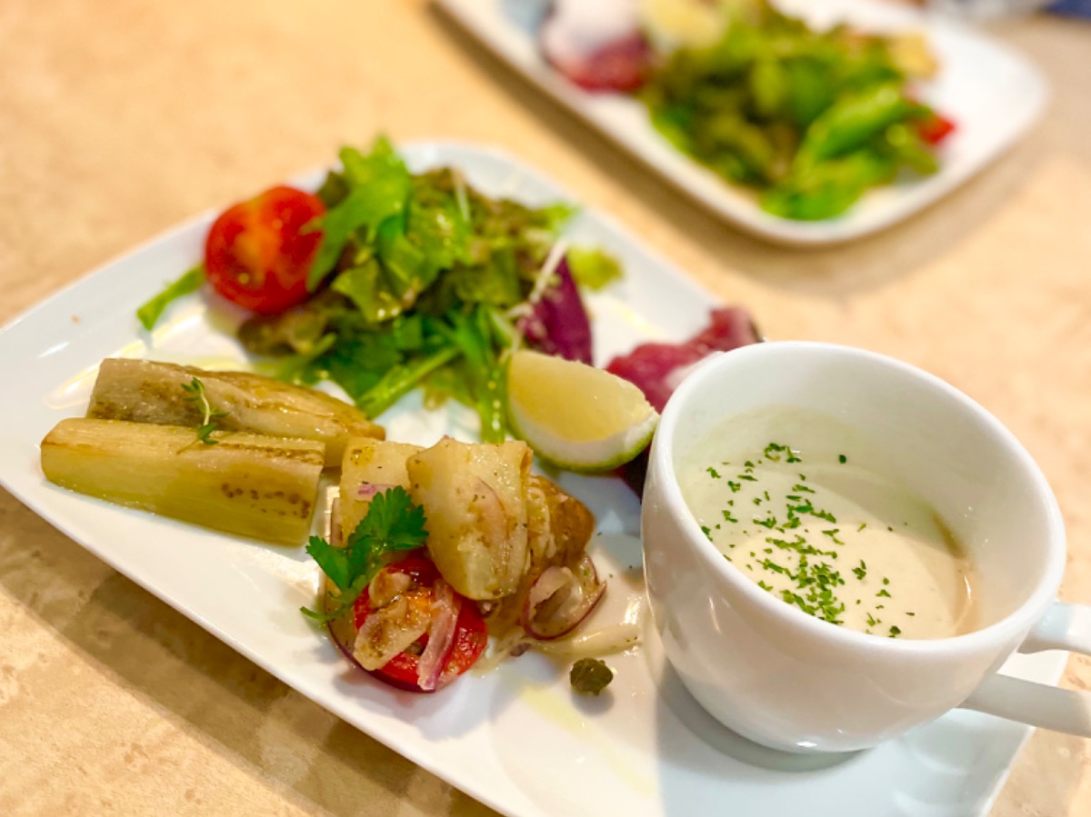 前菜のお魚だったりパスタメニューもあるので、選択肢がたくさんあり通いたくなるお店です♪