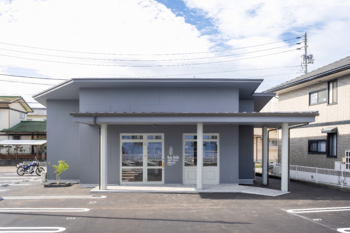 9月28日に「プース・ド・シェフ」改め、「be-blé ARTISAN BREAD(ビブレ アーティザン ブレッド)」に名前を変えて、もともとあった店舗のすぐ裏の土地に移転オープン。ヨーロッパにあるような、ブルーグレーのスタイリッシュな外観が素敵です。愛媛県の建築設計事務所「fol設計」さんが設計・デザインされました。