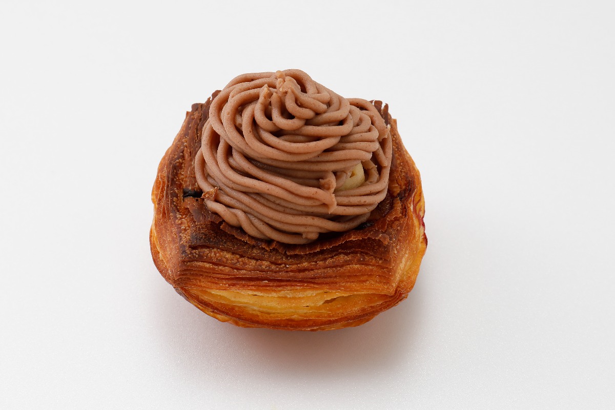 季節のデニッシュ。今は秋の味覚・栗を使った「モンブランデニッシュ」を販売しています。ラム酒香る自家製モンブランクリームをたっぷりと絞り、中には渋皮栗が隠れています。栗好きにはたまりません。