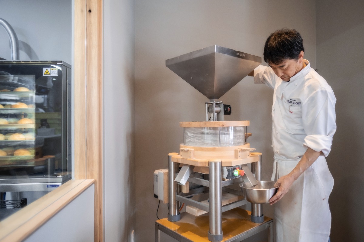 お店のオープンに合わせて、新たにチャレンジしたことも。ドイツから仕入れた石臼を使って、国産小麦の玄麦を自家製粉しています。その日使う分だけ製粉した小麦は、香りの豊かさが全然違うのだそう。