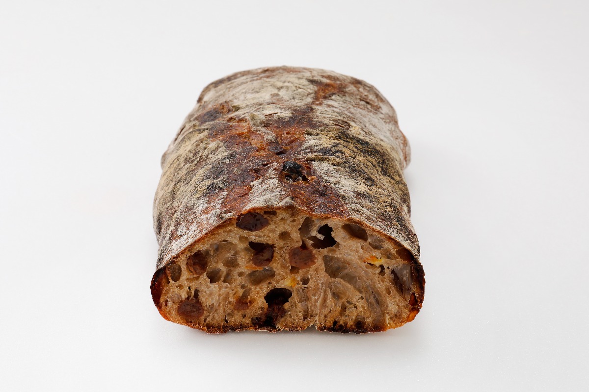 お酒のサングリアをパンで表現したというこちら。生地に赤ワイン、数種のスパイス、ドライフルーツを練り込んだ大人な味わいです。夜にお酒と一緒に味わいたい、そんなパン。