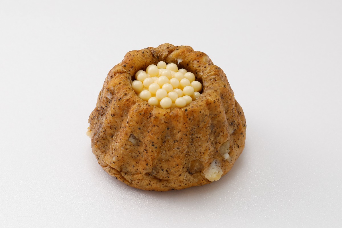 レモンティー味のブリオッシュ生地に、自家製レモンクリームをたっぷりとイン。仕上げにシリアルホワイトチョコをトッピングしたクグロフです。