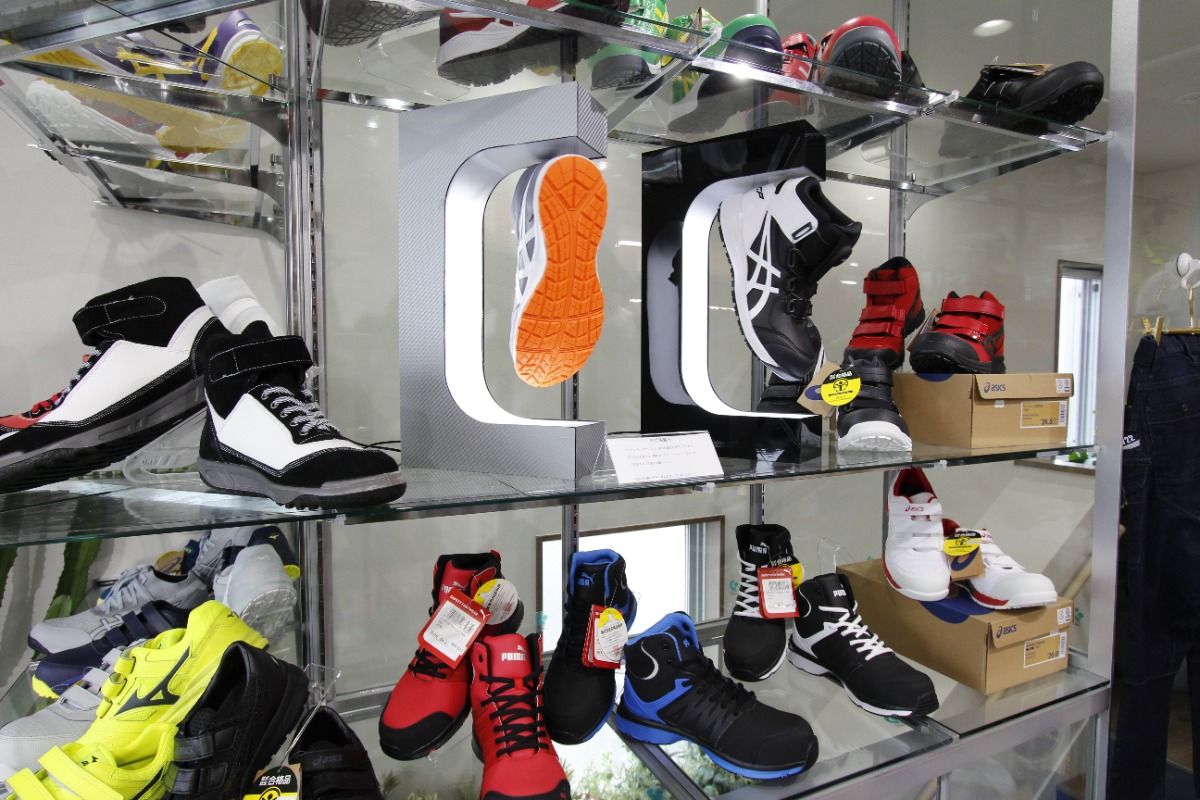 アシックスやミズノ、プーマなどの安全靴が揃う。一見一般的なシューズのようだが、しっかりとした安全靴!そのうえ軽いため歩きやすいのも嬉しい。作業の際も足元から気分を上げられる、人気商品となっている。