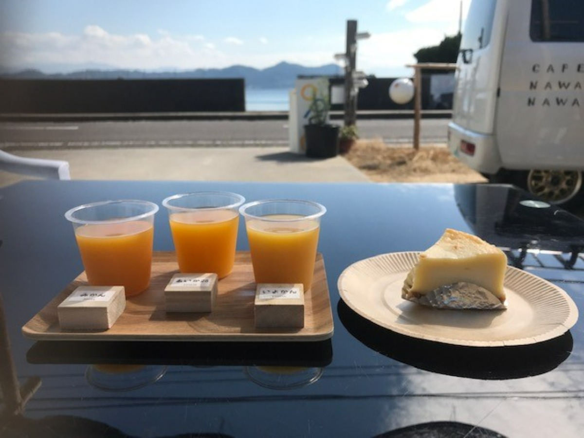 JICA海外協力隊としてナミビアで活動していた夫婦が営む店。「世界と島」をテーマに、日常では味わえない菓子や興居島の柑橘を使用したドリンクなどが楽しめる。ゆったりとした時間の中でいろいろな国の話を聞けるのも魅力。