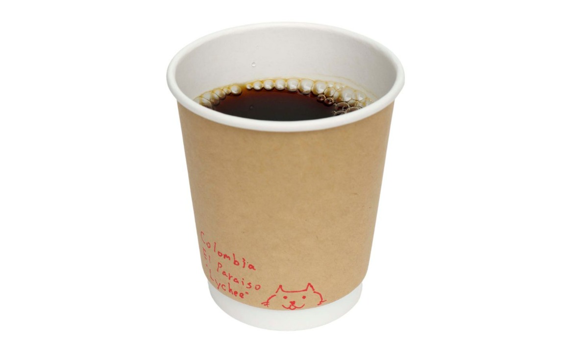 特殊な精製方法で作られた豆を使用。白桃やライチのような特徴的な甘い香味と落ち着いた酸味のバランスが絶妙。カップの猫の絵は店主直筆!