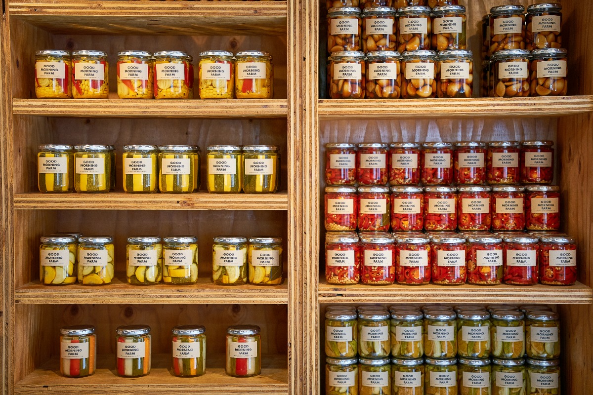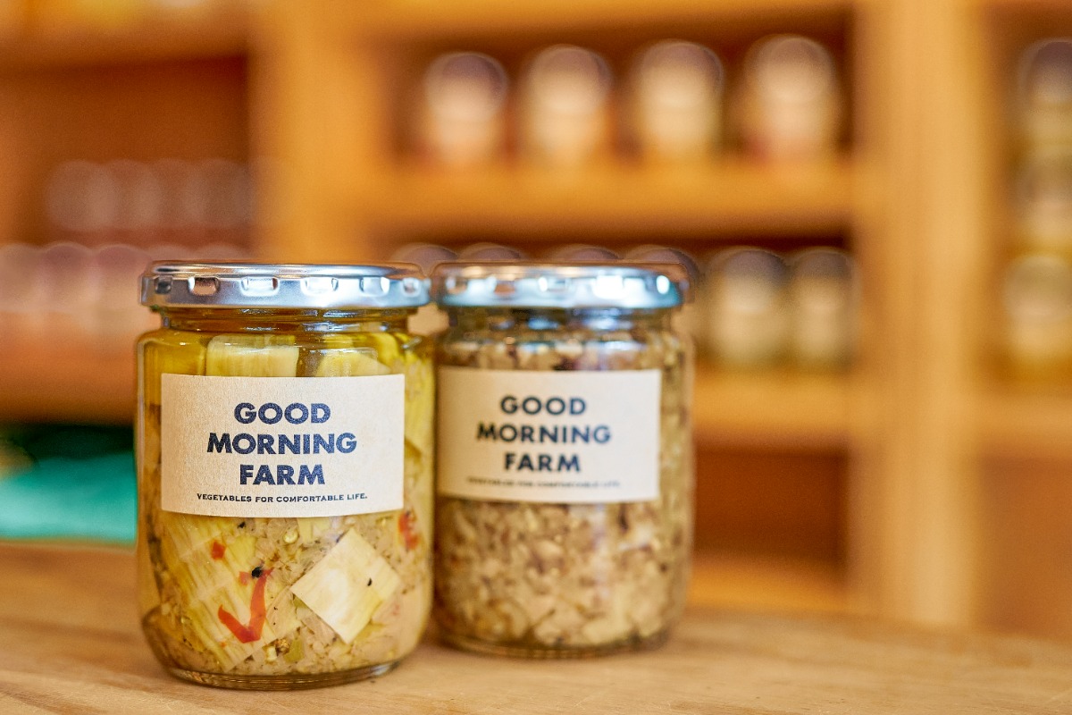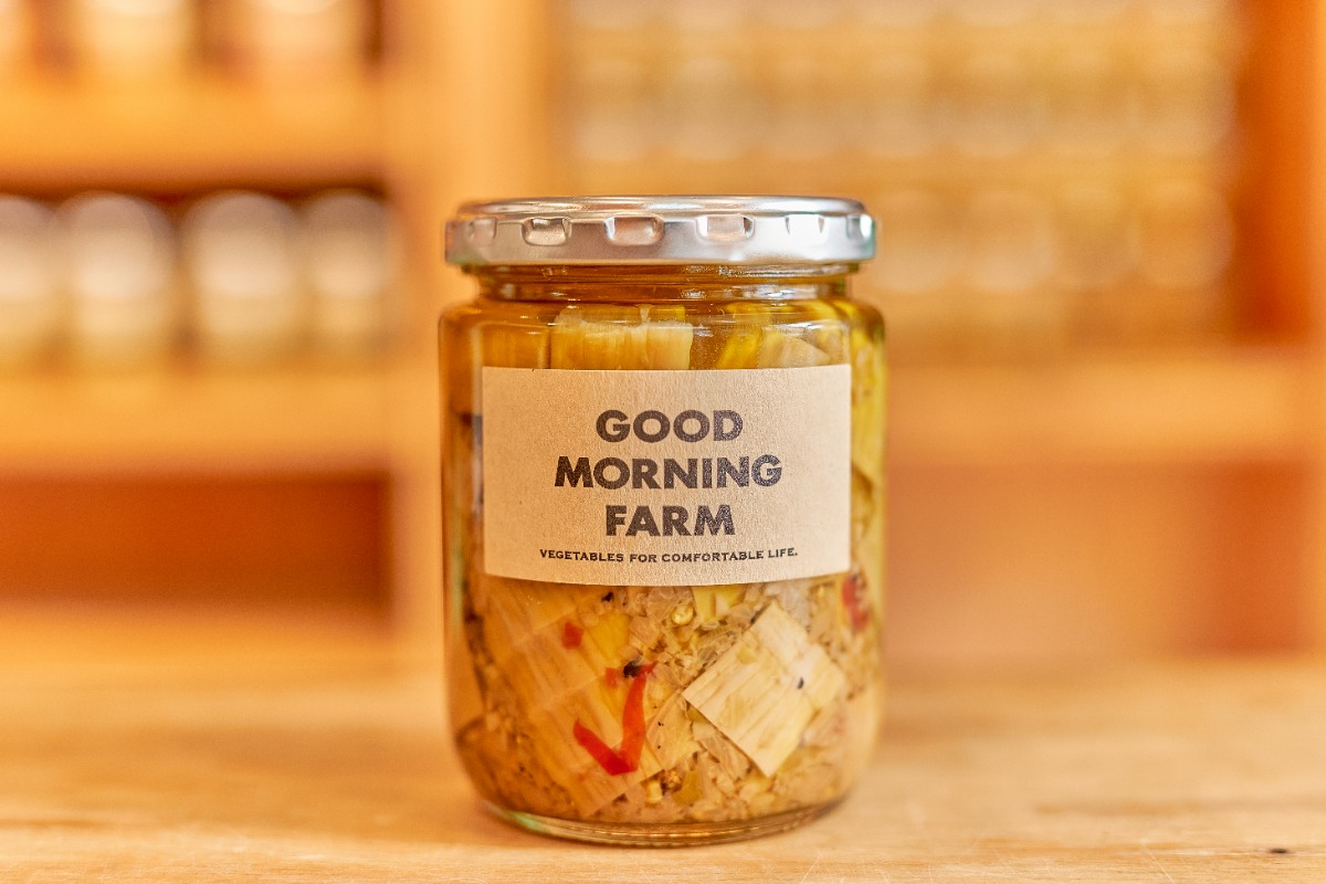 愛媛県内子町でピクルス、ジャム、オイル漬けを手づくりする工房です。旬の野菜をもりもり食べてほしいとの想いで、野菜本来の味を生かした添加物不使用のひと瓶を作られています。