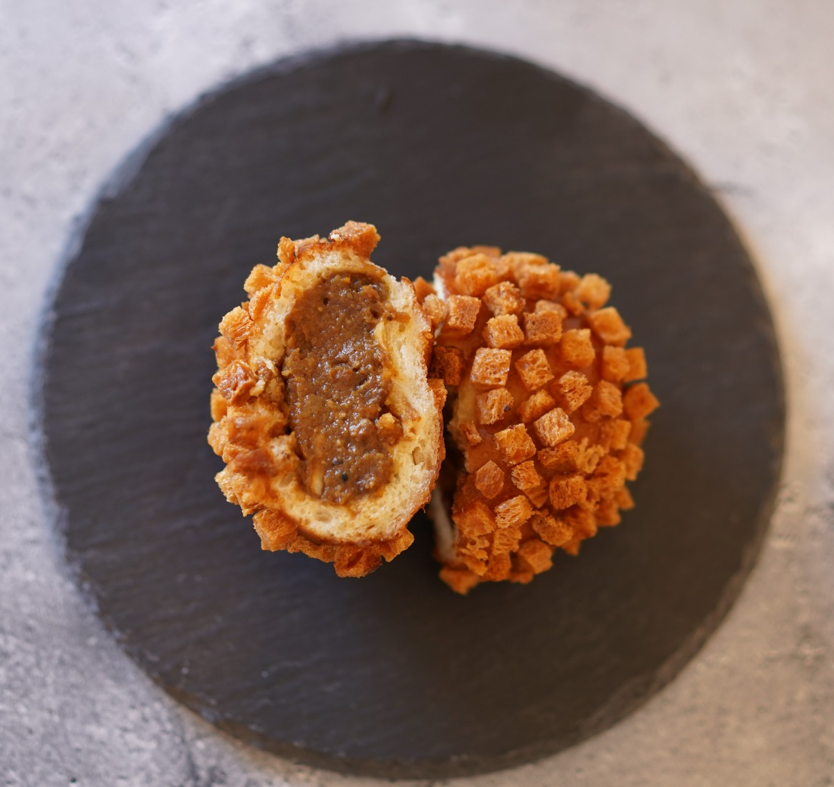 インパクト強すぎの「ザックザクカレーパン」(290円) は、一度は食べてほしい一品。「カレーパングランプリ」で3年連続金賞を受賞。パンの表面にクルトンを貼り付けて揚げてあり、食感もザックザクで、一度食べたらクセになる。特製スパイスを使用した“ごろっ”としたジャガイモ入りのオリジナルカレーと、冷めても美味しい独自開発の“もっちり”生地との相性も抜群。