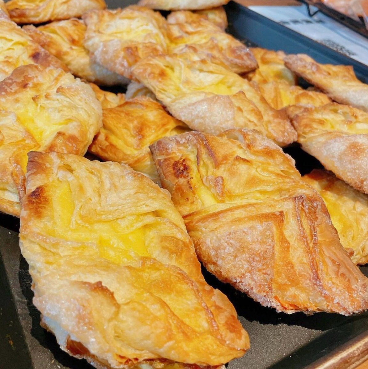 「あんたたち2人いいじゃない クリームパイ」(290円)は、小さな子どもでも2つペロッと食べてしまうほど、食べやすい味。また、「プレミアム奴隷『生』食パン」(一斤650円)は、生地に生クリーム、ハチミツ、練乳、バターを練り込んだリッチな食パン。とにかく多彩なパンが揃うので、まずはお店に立ち寄ってみて!