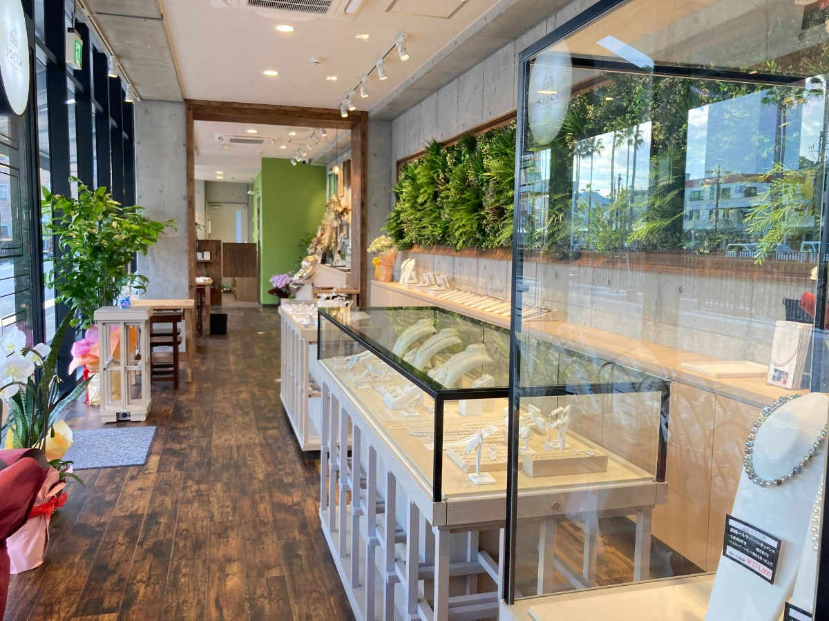 宇和島の無調色真珠のジュエリーやパールコスメの販売と、指輪作り体験が楽しめる店。オープンして、遠方からも多くの人が訪れる。手頃な価格のジュエリーが数多く揃う中、指輪体験は、10月中10%OFFで体験できる。