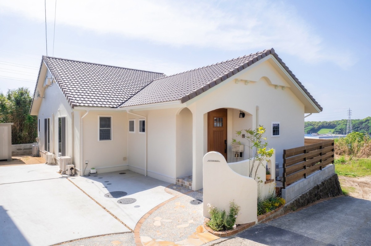 海を見下ろす景観に合わせた白壁が素敵な平屋。
