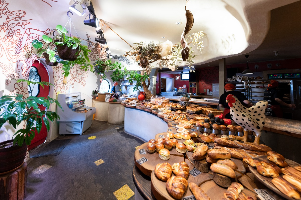 店内に入ってみると、目の前のカウンターには見た目もユニークなパンがずら~っと並んでいます。変わった形のパンがあったり、真っ黒な色をしたパンがあったり。見ているだけでワクワクしちゃいます!