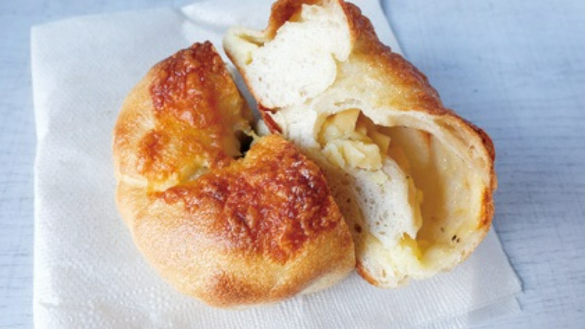 一番人気のベーグル。自家製のガーリックバターとこってりチーズの相性が抜群。温めて食べるとさらに◎。