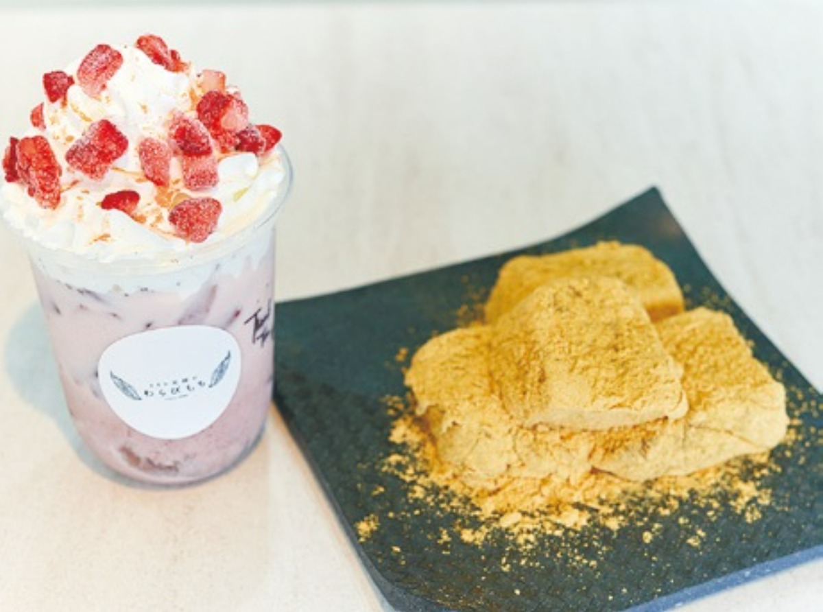 通常のわらびもちのほか、新感覚ドリンクの「飲むわらびもち」もイチオシ。いちごやマンゴーなどの季節限定メニューも要チェックです!
