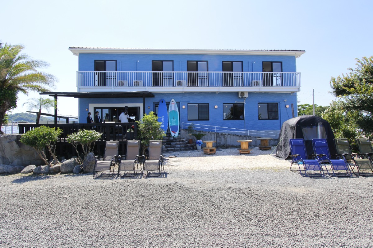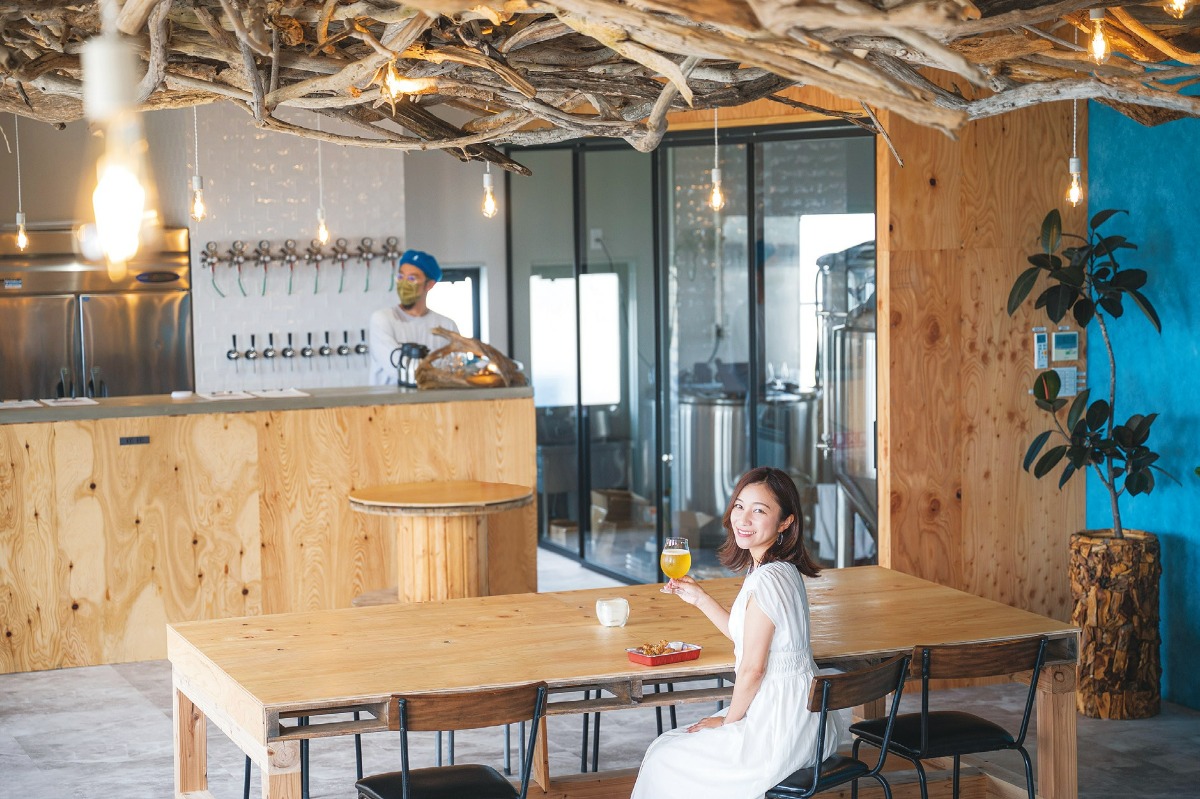 いつもはワインと食を楽しめるお店を紹介しているこの連載ですが、今回は夏の番外編! 夏といえば、海、ということで、モンチッチ海岸(立岩海水浴場)にこの夏オープンした「HOJO Brewing&Stays」をご紹介します。目の前が海という最高のロケーションに立つこちらの店舗は、クラフトビール醸造所兼ゲストハウス。元々飲食店だった店舗をリノベーションし、県内の海辺で集められた流木を使った流木アートが目を惹くオシャレな空間になっています。