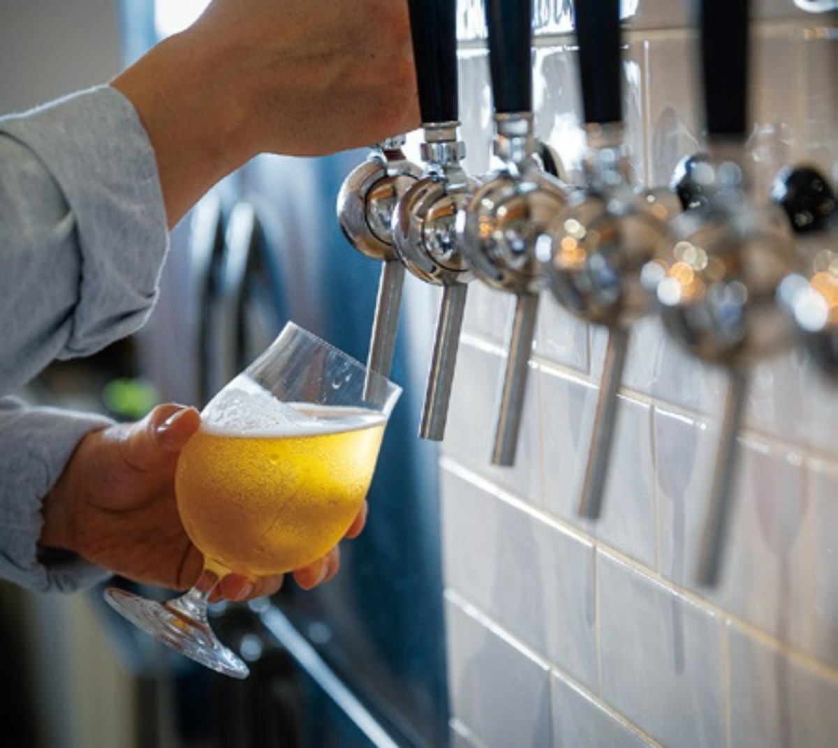 1階のタップルームでは時期によって様々なクラフトビールを楽しむことができるのですが、中でもオリジナルクラフトビールが人気。「ローズマリーセゾン」は爽快感のある香りが特徴で、スッキリと軽い飲み心地が暑い時期にぴったりです。また「ミルクシェークIPA」は、一般的に苦みが強いIPAをもっと多くの人に楽しんでもらいたいという想いから、バニラビーンズと乳糖を加えることで、苦みを抑え、滑らかな口当たりに仕上げています。