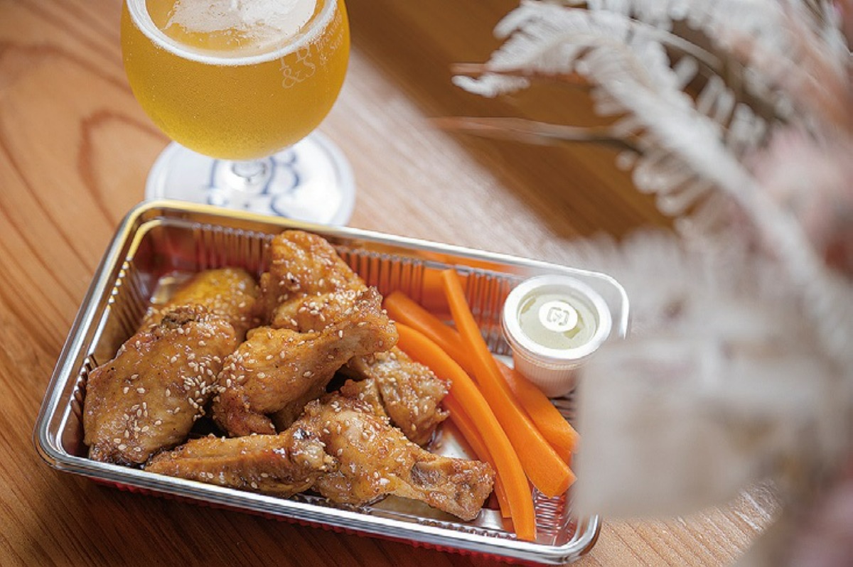 そして毎週日曜日限定で、店内ではビールに合う多国籍料理が数量限定で楽しめます。今回はアメリカで定番の「バッファローウィングス」。甘みのあるタレの加減が絶妙で、手が止まらなくなる美味しさ。もうビールが進む、ススム!