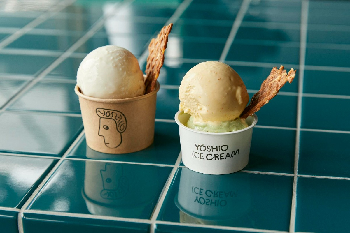 イチオシの、昔懐かしいアイスクリンを和三盆とメレンゲでアレンジしてリッチな味わいになった「YOSHIOのアイスクリン」や香川県産の白桃にミントを加えた「白桃ミント」をはじめ、素材にこだわり抜いたアイスクリームから選べる。