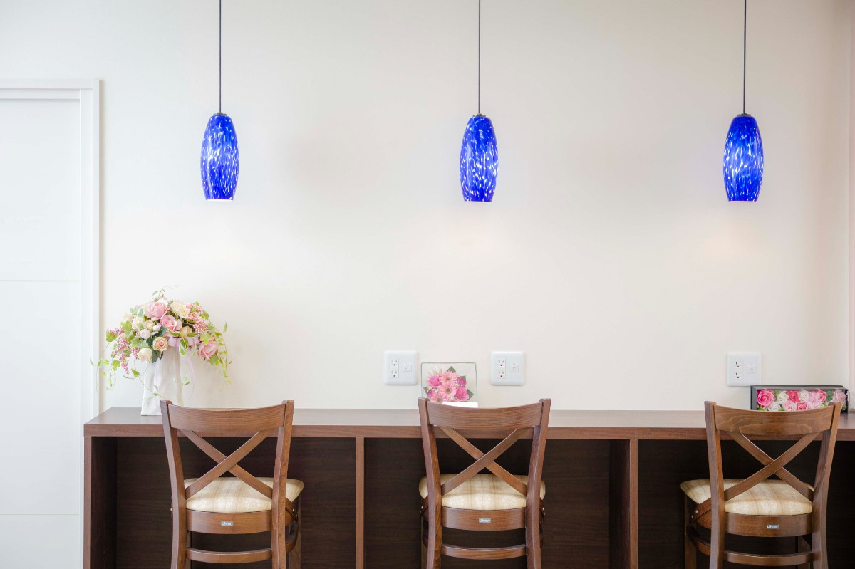 ブルーの照明が美しいカウンター席は一人で来院する患者に好評。18時まで受付可能で、仕事帰りの人でも安心して通うことができる