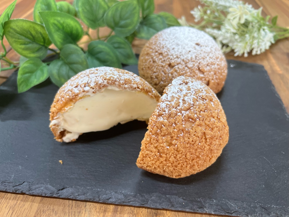 素朴で心温まる味が特徴の菓子工房。店頭には、焼き菓子がずらりと並び、中でもクッキーシューはすぐに完売するほどの人気ぶり。予約も可能で、Instagramや公式LINEで2日前までに注文を! 受け取りは店頭にて。