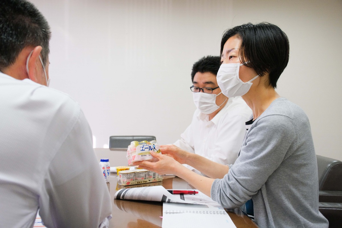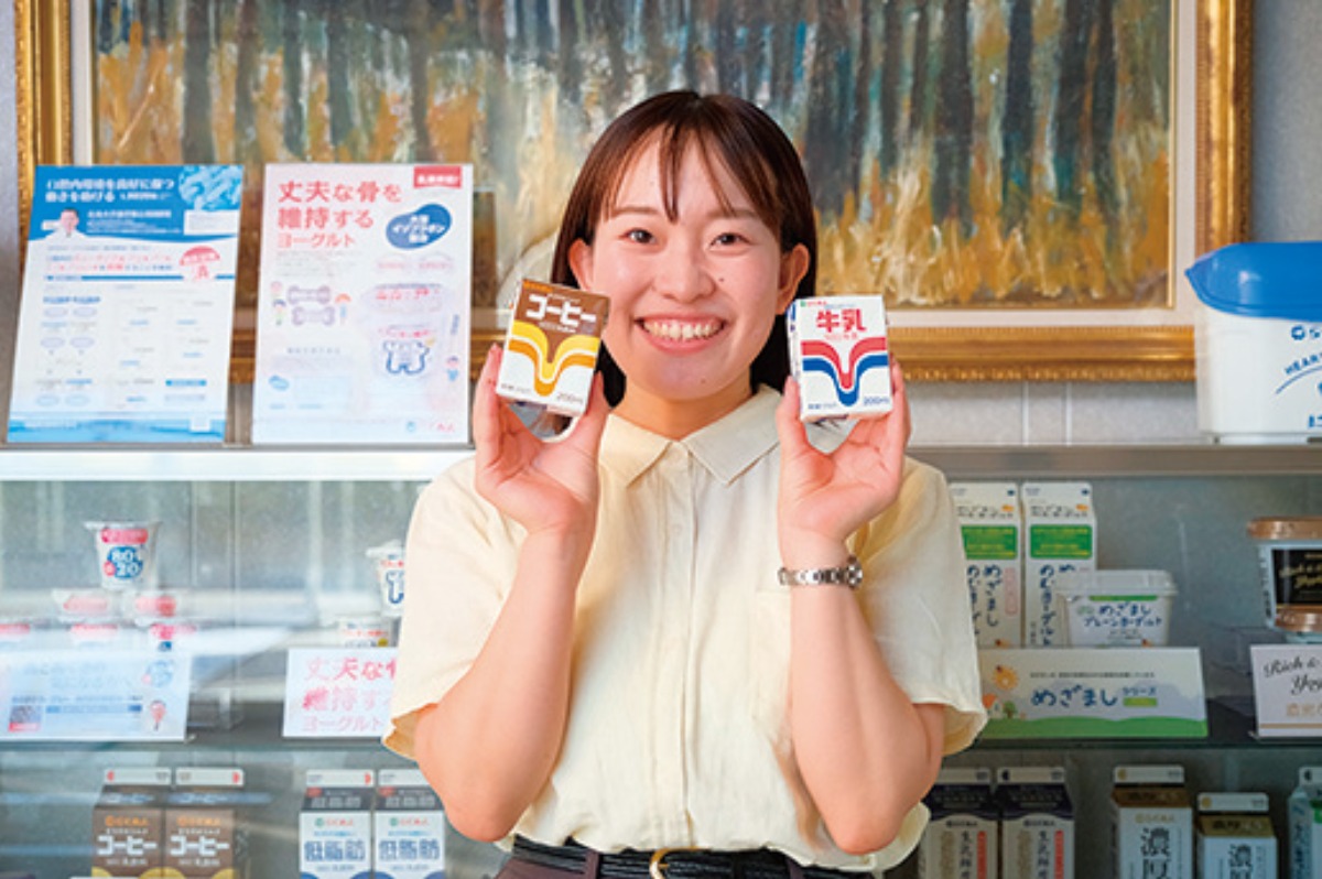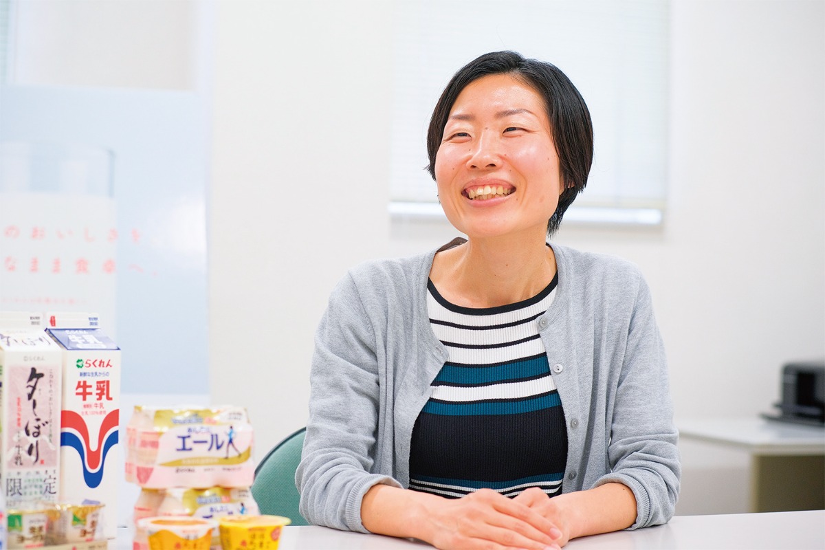 2006年に新卒採用で入社。四国乳業で女性初の営業として配属され2年間務めた後、商品開発室に異動。現在まで約15年に渡り、主に新商品の開発や既存商品の改良などを務める。