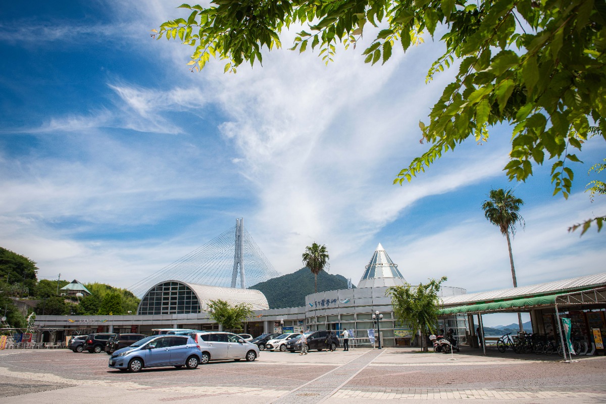大三島の島内で採れた野菜や柑橘のみを扱う産直コーナーが人気の道の駅。事前予約制の観光ガイド受付も含めた「観光インフォメーションセンター」や「レンタサイクルセンター」も設置。サイクリスト用のシャワールームや土・日曜のみ立ち食いスタイルで食べられるうどんコーナーも人気となっている。