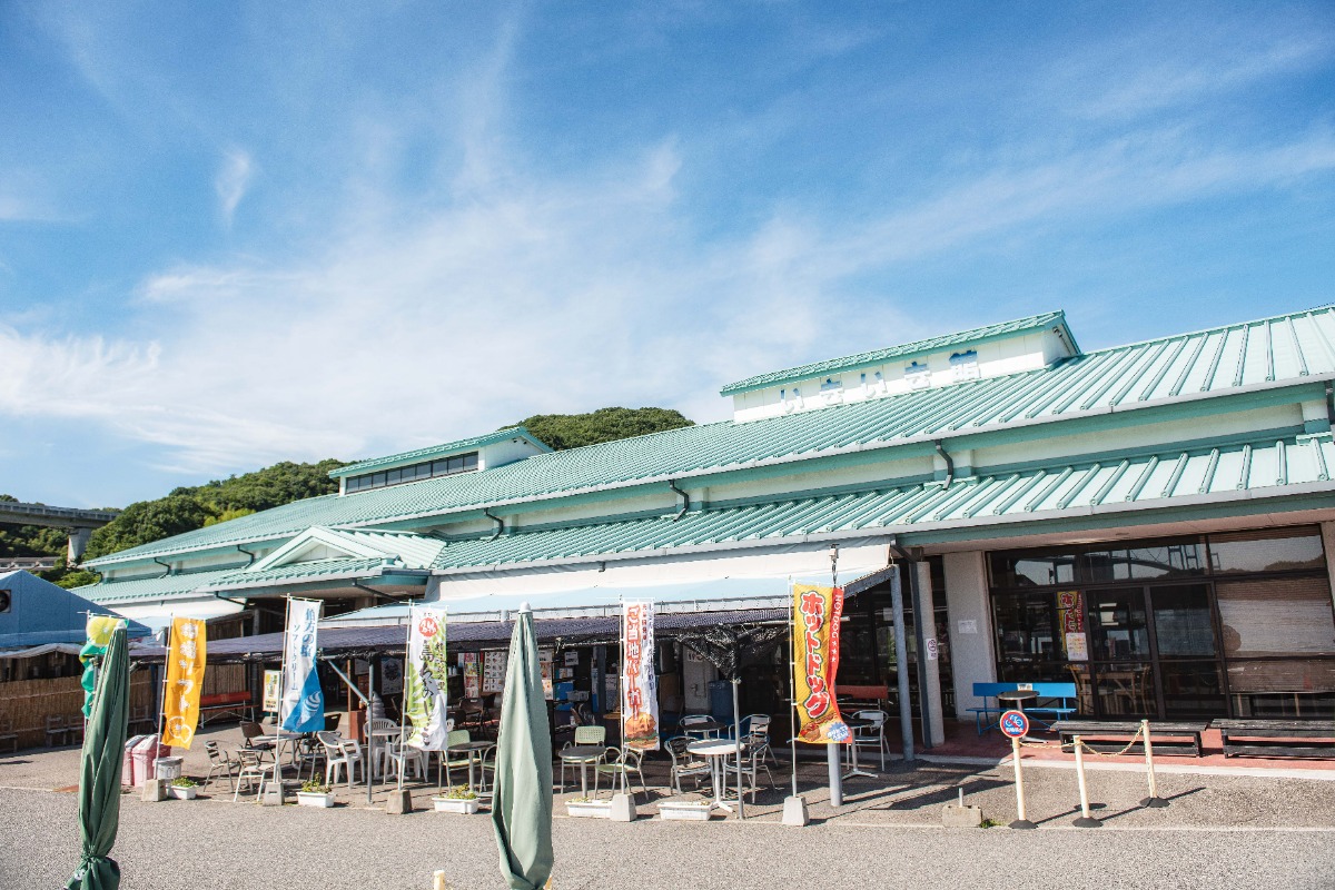 来島鯛など新鮮な海鮮料理が味わえる食事処や特産品販売所だけでなく、豪快さが自慢の七輪バーベキューなども楽しめる「よしうみいきいき館」。