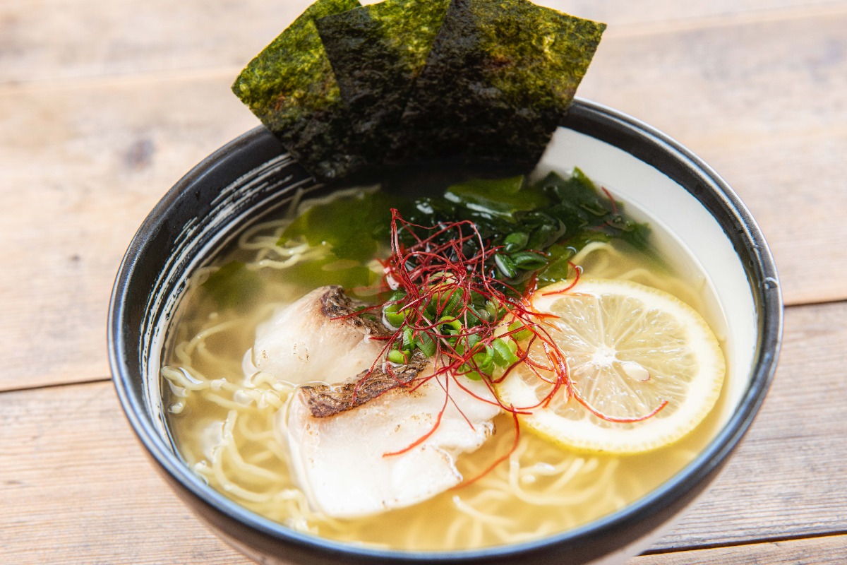 瀬戸内海の恵みが存分に味わえるラーメン! 大島産の海苔とわかめをトッピング。鯛ダシの効いた、旨みたっぷりの「伯方の塩」ベース。